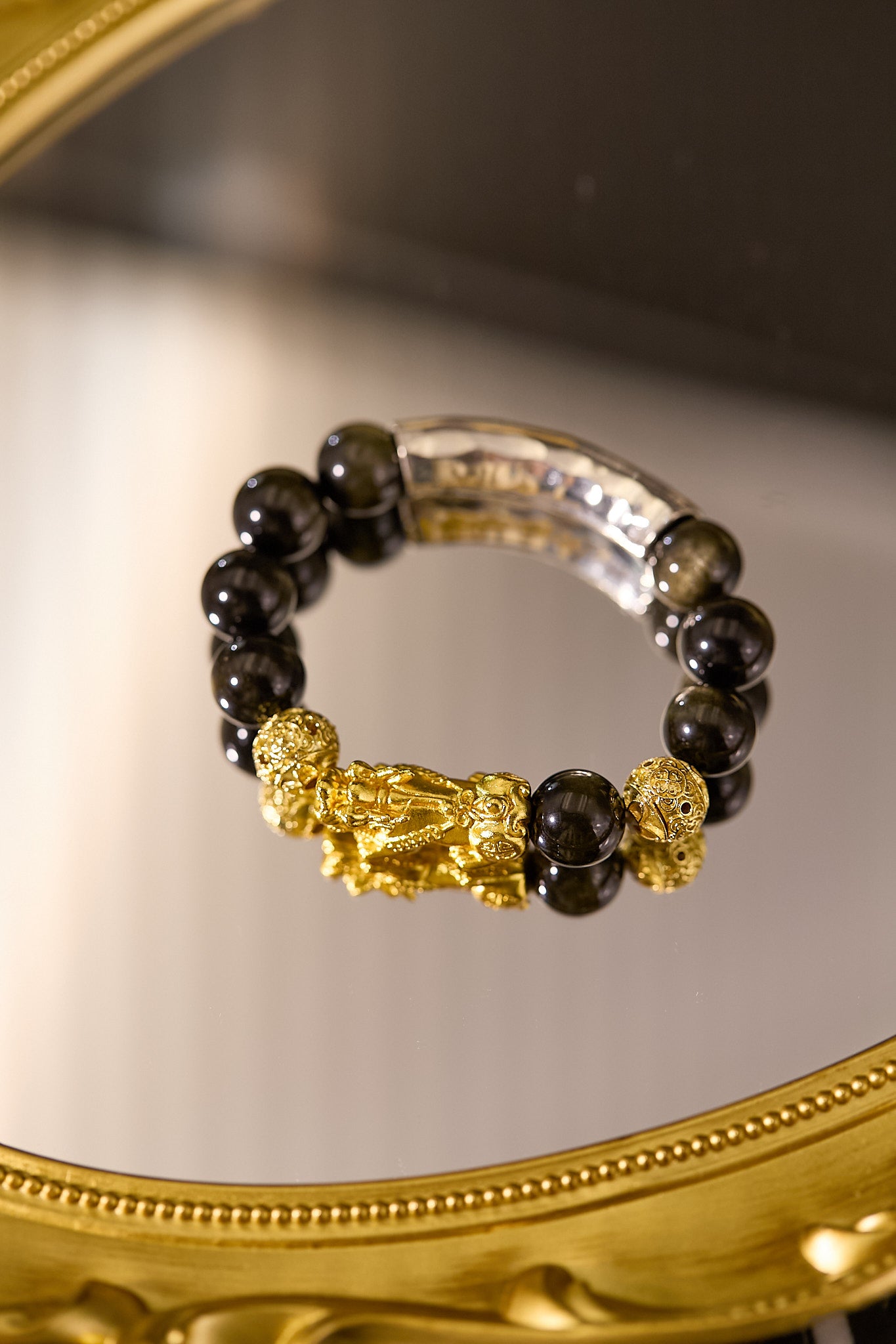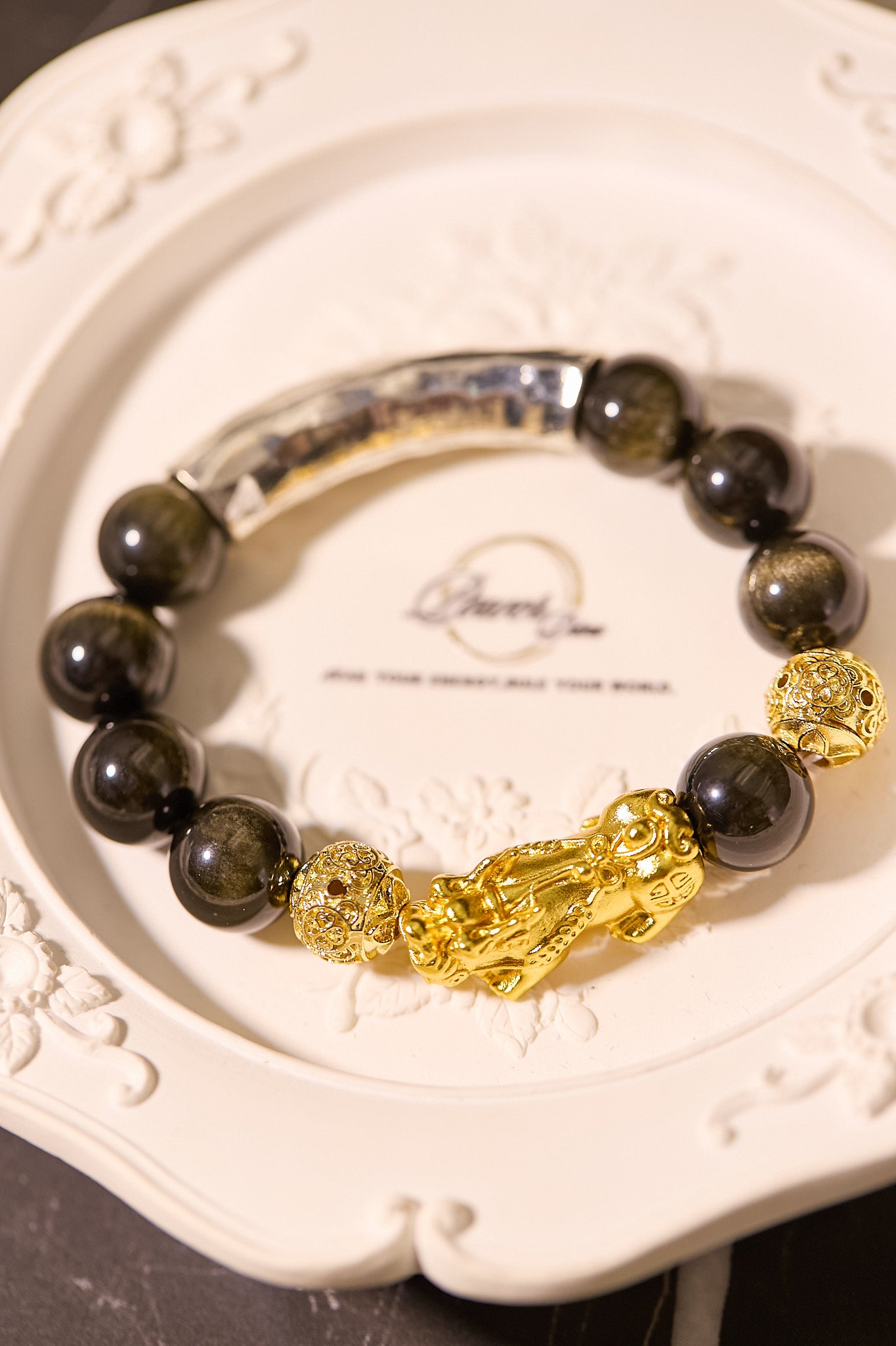 可增強生命力,恢復人的精神、體力。 可助強健腎臟,吸收病氣,增進睡眠。 金曜石中黑色的原色極度辟邪,能強力化解負能量,具有招財聚財之效並可使人穩重,舒緩壓力,令人心平氣和,消除情緒困擾、增強行動力、領袖魅力和向心力。 人體「左入右出」,如果你想消除身體之負能量,請佩戴金曜石在右手。
